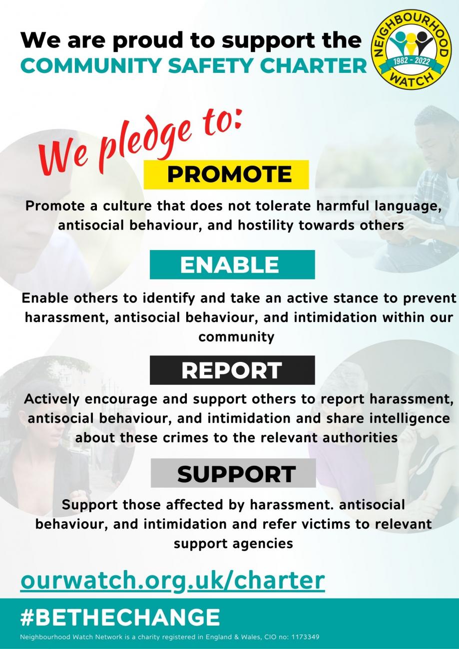 The Community Safety Charter is a national initiative helping businesses, charities, and community groups take a stand against crime, harassment, and antisocial behaviour.