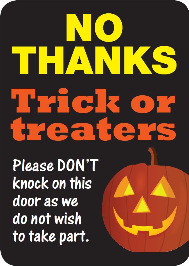 So by popular demand we’ve designed a small window sticker that can be used to politely deter trick or treaters.