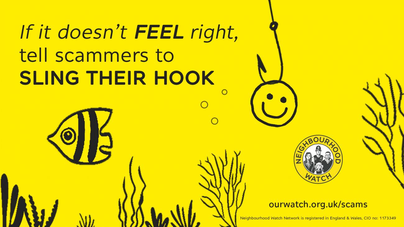 To help you spread the word about scams and how people can avoid falling victim to them, we’ve compiled a range of free campaign materials, including the SLING YOUR HOOK campaign resources, that you can use to educate and inform people in your neighbourhood. Click here to see our scams campaigning toolkit.