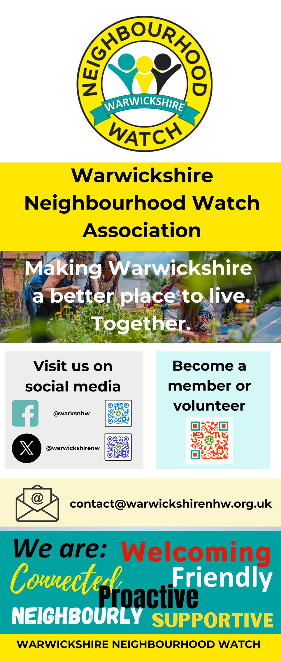 - support new & existing Neighbourhood Watch schemes in the County of Warwickshire